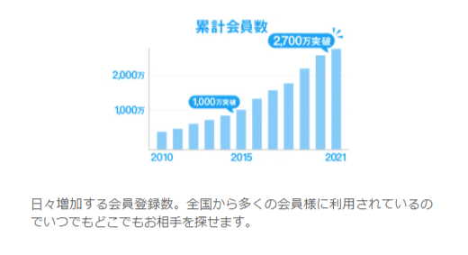 日本最大級の950万人超が利用する恋愛マッチングサイト