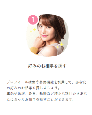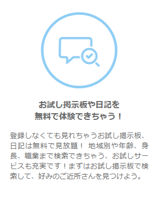 - 地域別や年齢、身長、職業まで検索できるお試しサービスも充実